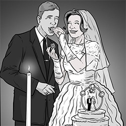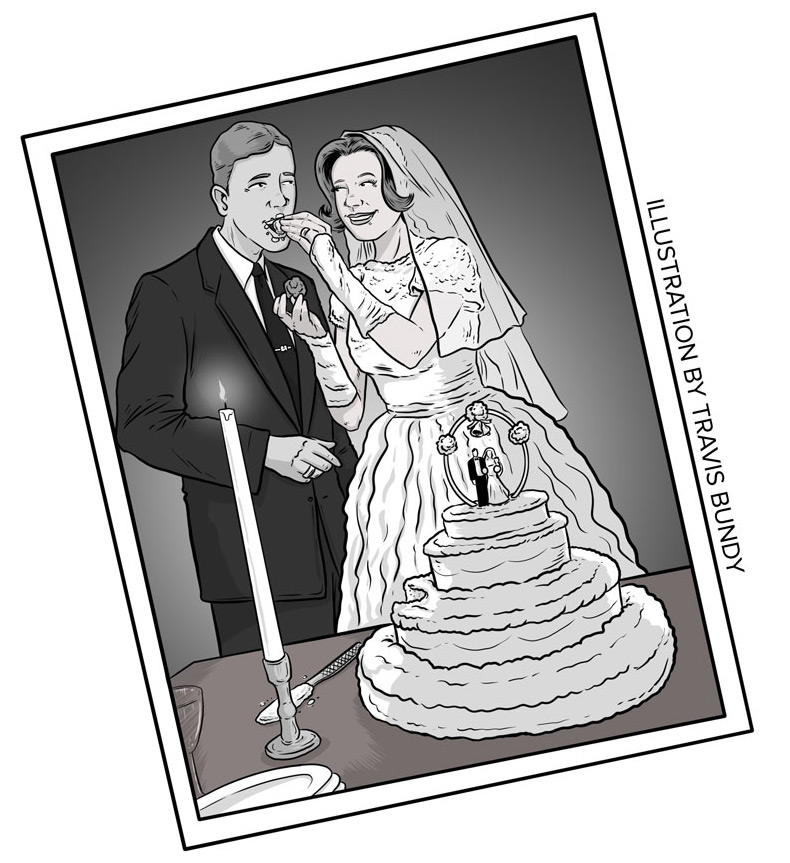 She glided toward him on her father's arm. Her figure was va-va-voom in a white dress that swished around her legs without touching the floor. Tonight, he would finally get to see what was under those clothes. They'd gotten close a couple times in the back seat of his Buick, but she always managed to come to her senses in time to stop him.